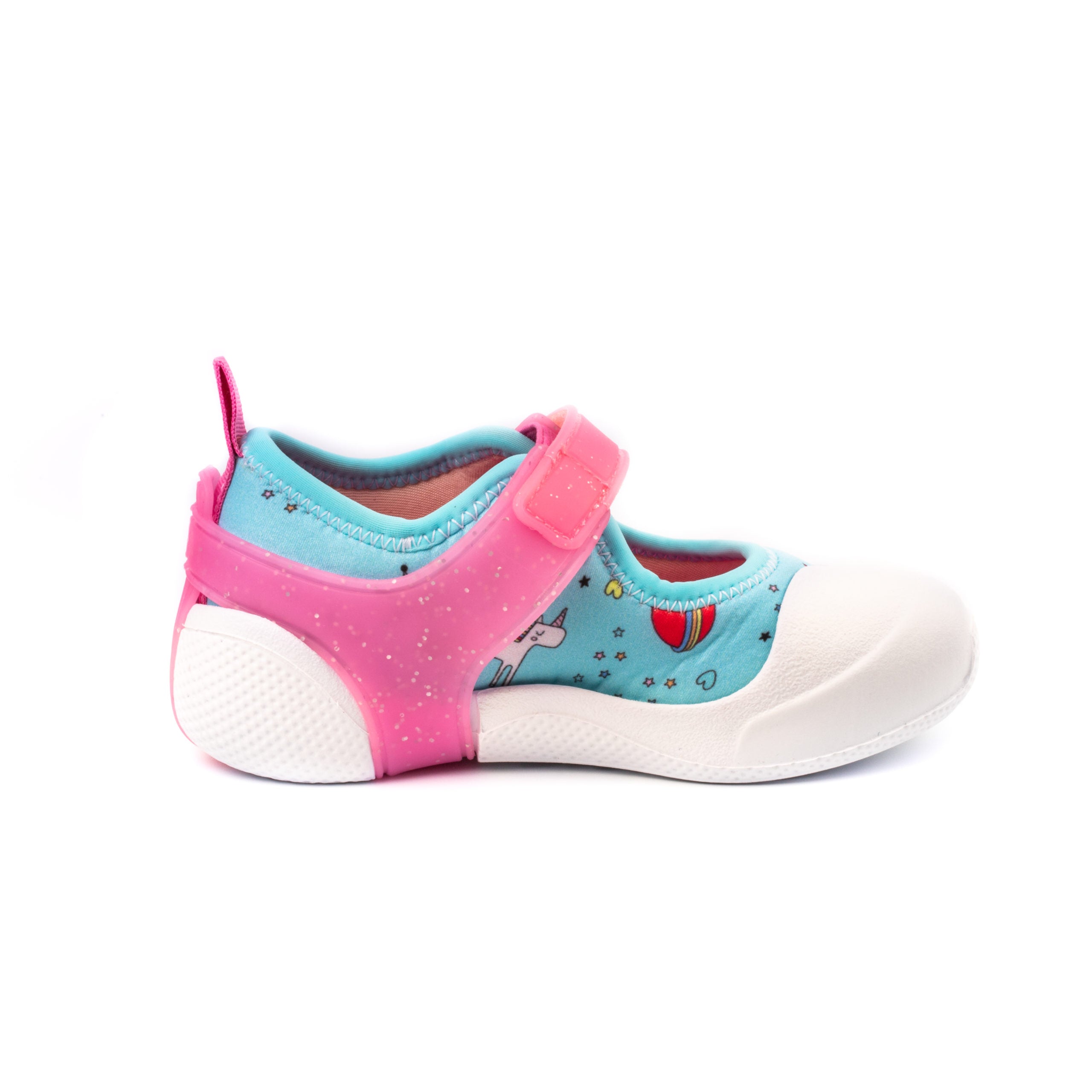 Tehnologie unica dezvoltata de Bibi, pantofii 2way pentru interior si exterior, cu talpa detasabila, pot fi folositi ca incaltaminte de interior si, prin adaugarea talpii de cauciuc cu sistem EVA antialunecare, devin pantofiori de exterior. Ideali pentru gradinita sau locuri de joaca. Model cu unicorni.